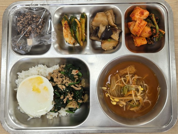 오늘급식 페이지 정보 작성자 안미순 댓글 0건 조회 42회 작성일 26-03-09 12:28 목록 본문 일자 : 2026-03-13 .찰현미밥.김치콩나물국(5.9).팟시금치무쌉(5.6.10.13.18) /달걀후라이(1).오이무침(5.6).새송이버터구이(2.5.6.13.18).오이무침(5.6).총각김치(13)에너지 / 단백질 / 칼슘 / 철796.2 / 35.4 / 229.7 / 4.9 이전글오늘급식 26.03.11 다음글오늘급식 26.03.09