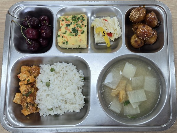 오늘급식 페이지 정보 작성자 안미순 댓글 0건 조회 294회 작성일 25-08-29 12:55 목록 본문 일자 : 2025-09-01 .백미밥.황태채무국(13).마파두부(5.6.10.12.13.18).알감자조림(5.6).야채계란찜(1.5.6.8)백김치(13).체리에너지 / 단백질 / 칼슘 / 철1,028,4 / 38.9 / 307.7 / 4.6 이전글오늘급식 25.08.29 다음글오늘급식 25.08.29