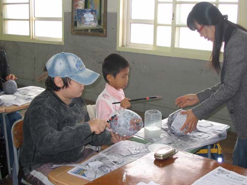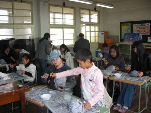 풍선을 불어서 이쁘게 붙이면 이렇게 예쁜 공이 되지요