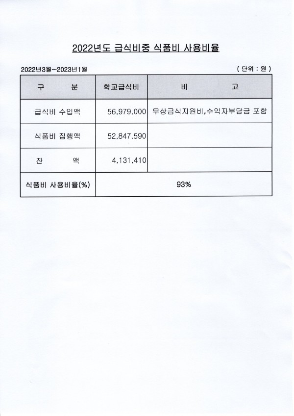 2022학년도 급식비 중 식품비 사용비율 공개 페이지 정보 작성자 새날 댓글 0건 조회 1,153회 작성일 23-02-07 12:50 목록 본문 이전글2022학년도 학교급식 이행보고서 23.02.24 다음글축산물원패스큐알코드 22.12.06 댓글 0 댓글목록 등록된 댓글이 없습니다.