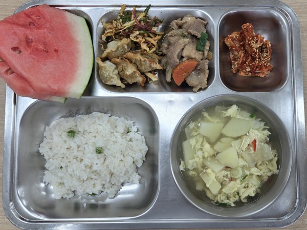 오늘급식 페이지 정보 작성자 안미순 댓글 0건 조회 182회 작성일 25-08-26 16:03 목록 본문 일자 : 2025-08-26 .칼슘발아현미밥.감자달걀국(1.13).돼지고기간장불고기(5.6.10.13).비빔만두(1.5.6.10.13.18).배추김치(9.13).수박에너지 / 단백질 / 칼슘 / 철816.1 / 39.7 / 222.6 / 16.7 이전글오늘급식 25.08.27 다음글오늘급식 25.08.26
