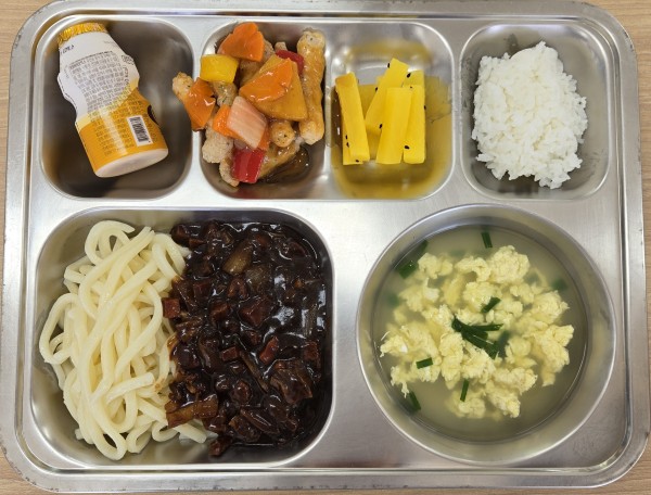 오늘급식 페이지 정보 작성자 안미순 댓글 0건 조회 149회 작성일 25-10-02 13:37 목록 본문 일자 : 2025-10-22 .추가밥.수제자장면(1.5.6.10.13.16).실파계란국(1).후르츠탕수육(1.5.6.10.11.12.13).스틱단무지(13).요구르트(2)에너지 / 단백질 / 칼슘 / 철934.0 / 34.3 / 348.9 / 11.9 이전글오늘급식 25.10.02 다음글오늘급식 25.10.02