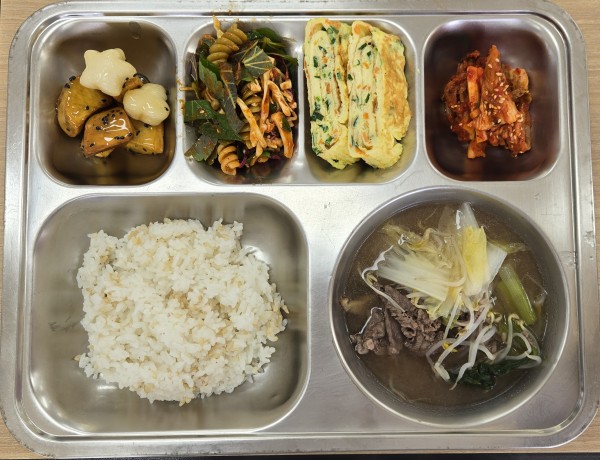 오늘급식 페이지 정보 작성자 안미순 댓글 0건 조회 85회 작성일 25-10-31 13:28 목록 본문 일자 : 2025-11-07 .가바찰현미밥.쇠고기샤브샤브국(5.6.16).파스타골뱅이무침(1.5.6.13).계란말이(1.13).고구마맛탕(13).배추김치(9.13)에너지 / 단백질 / 칼슘 / 철748.02 / 30.2 / 164.7 / 3.81 이전글오늘급식 25.11.03 다음글오늘급식 25.10.31