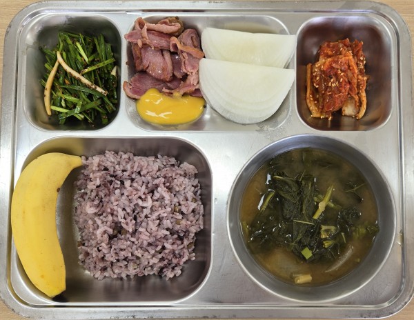 오늘급식 페이지 정보 작성자 안미순 댓글 0건 조회 74회 작성일 25-11-03 13:12 목록 본문 일자 : 2025-11-10 .잡곡밥.아욱된장국(5.6).오리훈제/쌈무(1.2.5.6).들깨무추무침(5.6).배추김치(9.13).바나나에너지 / 단백질 / 칼슘 / 철1,007,2 / 37.7 / 236.4 / 2.85 이전글오늘급식 25.11.03 다음글오늘급식 25.10.31