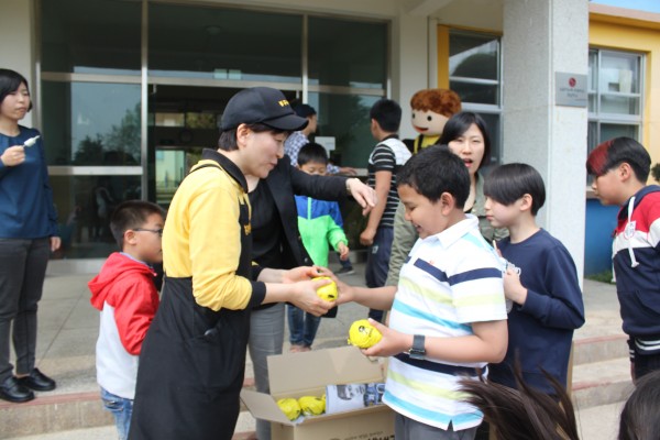 이날 박진희 사장과 함께 새날학교를 방문한 호남지사 기획관리팀 임지영씨를 비롯한 직원들은 인형의상을 입고 아이들과 밥버거를 나눠주며 놀아주는 즐거운 한때를 보내 어린학생들로부터 열렬한 환호를 받았다.