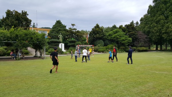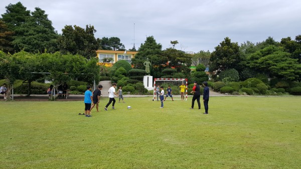 무더운 여름을 지난 새날학교- 가을날 운동장에서 축구하는 아이들(2017.08.30)