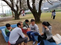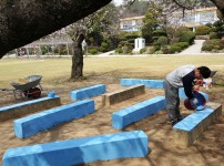 벚꽃나무 아래 야외교실 페인트칠
