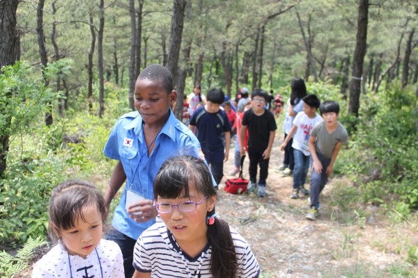 송학초와 새날학교 일일 통합교육 실시했다. 이날 통합수업시간과 학생들이 점심후 멘티,멘토 관계로 송학초 뒷산인 백마산 등반활동을 실시 다름이 하나되는 시간을 가졌다.