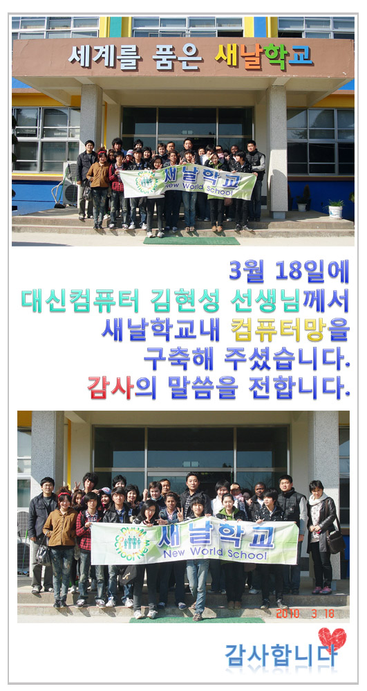 컴퓨터망을 구축해주셨습니다. 페이지 정보 작성자 새날 댓글 0건 조회 699회 작성일 10-03-29 11:31 목록 본문 컴퓨터망을 구축해주셨습니다. 이전글호남대 MT 봉사활동을 하셨습니다. 10.03.31 다음글광주시청자미디어센터에서 미디어체험을 하였습니다. 10.02.25 댓글 0 댓글목록 등록된 댓글이 없습니다.