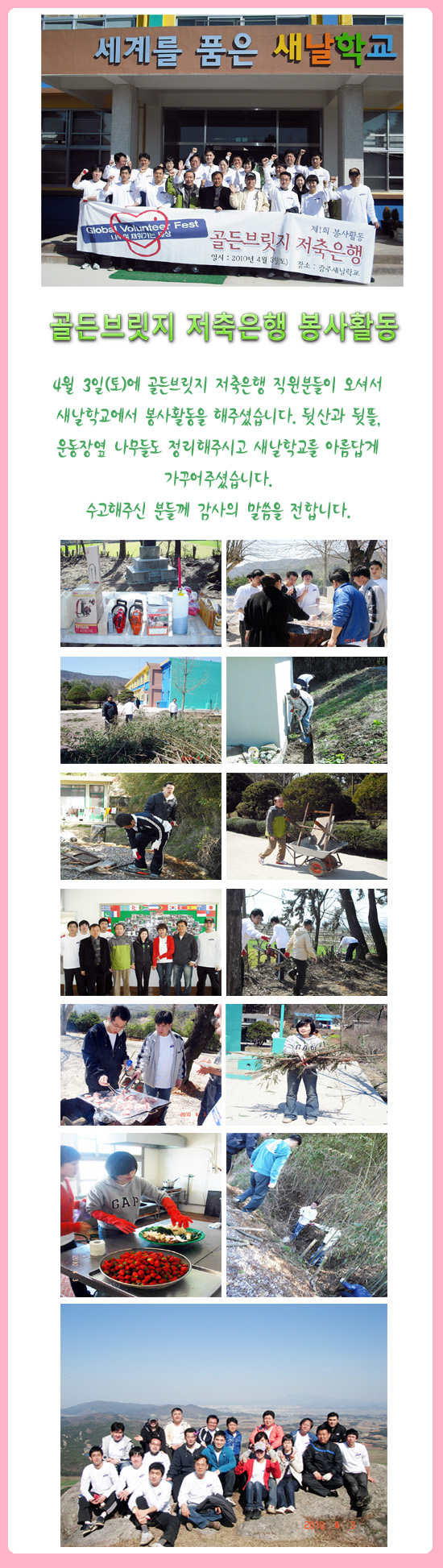 골든브릿지 저축은행에서 봉사활동 해주셨습니다. > 새날사진
