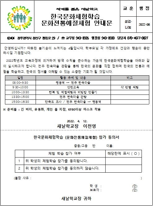 [22-8]문화전통예절체험 안내문 > 가정통신문