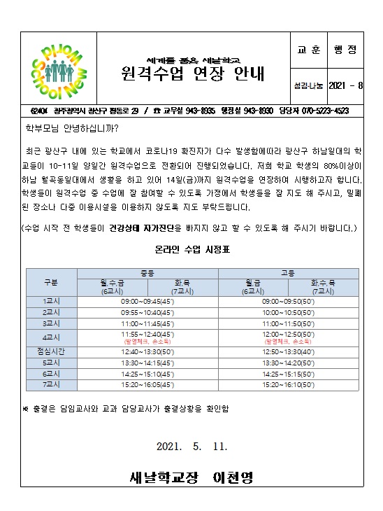 - 다음글[21-7] 원격수업 전환 안내 21.05.11